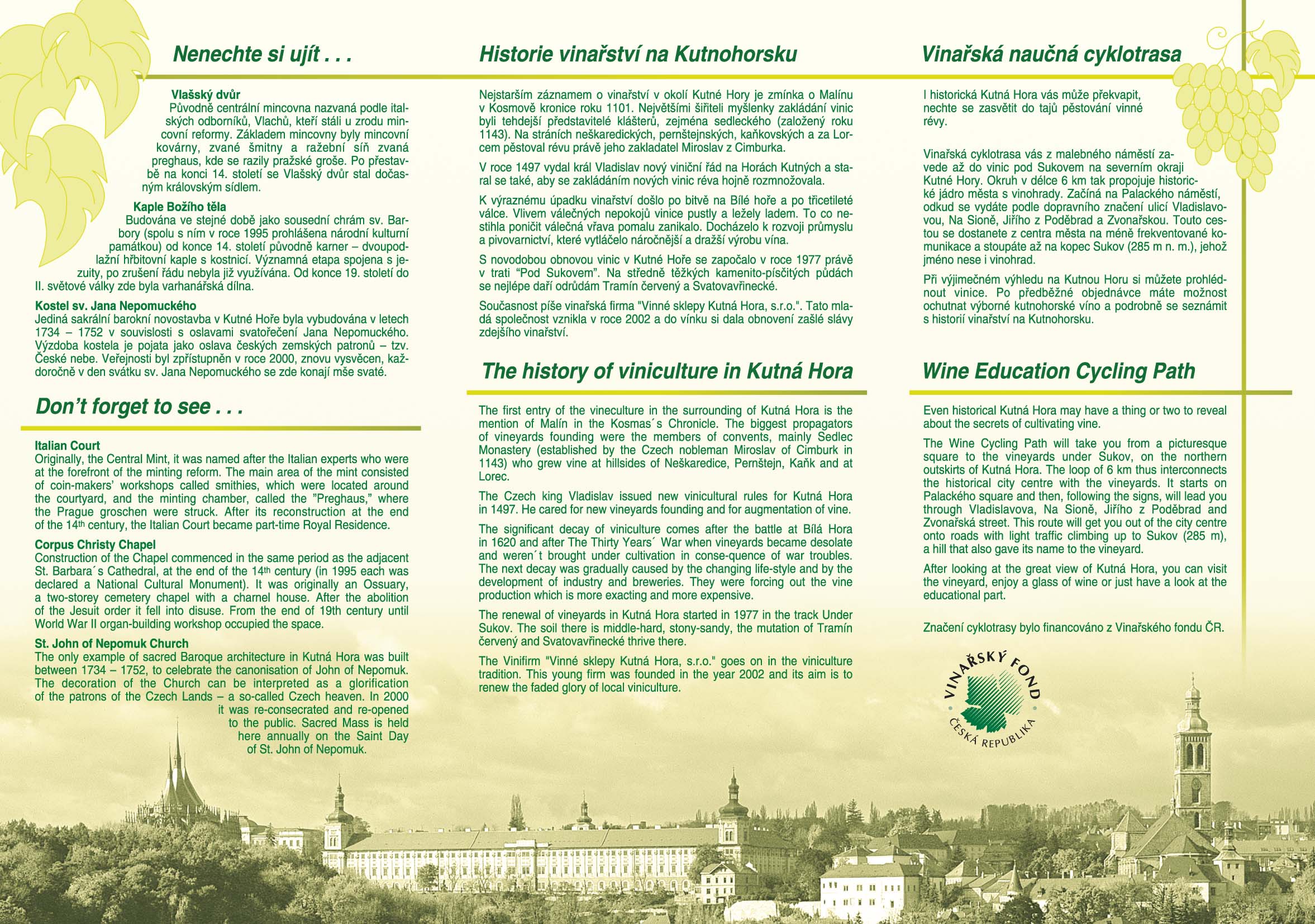 Vinařská cyklotrasa Vás z malebného náměstí zavede až do vinic pod Sukovem na severním okraji Kutné Hory.